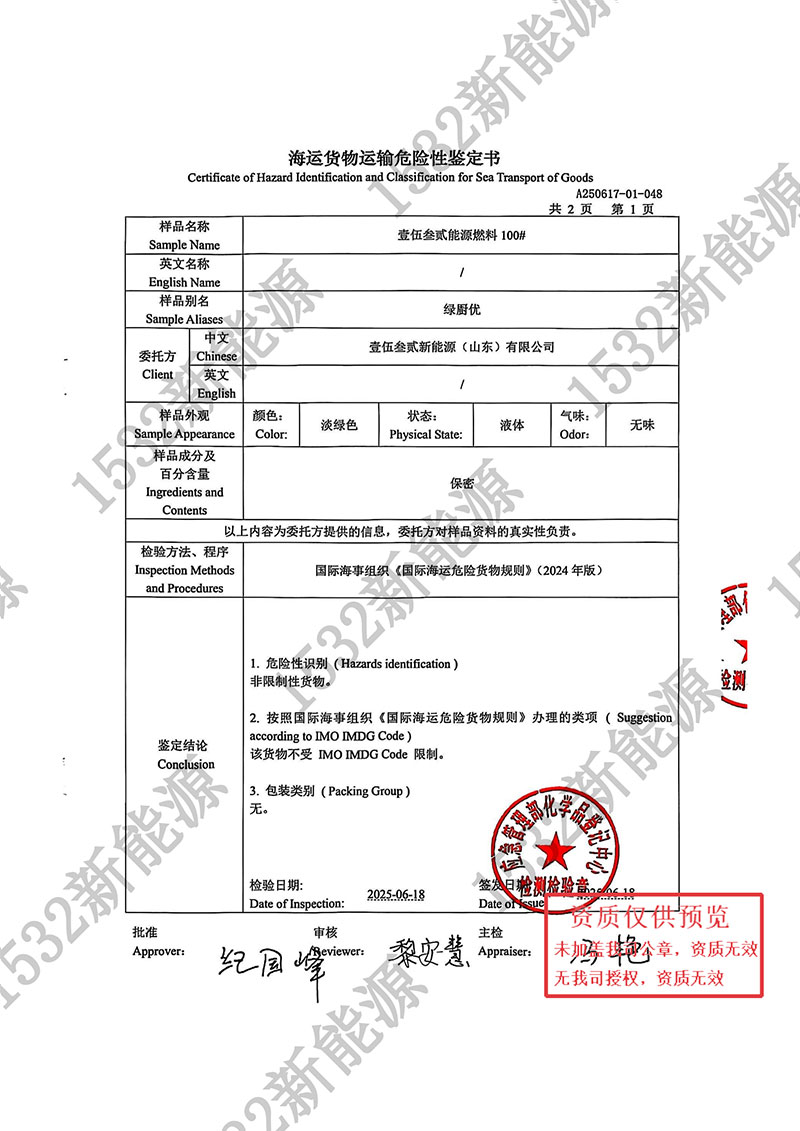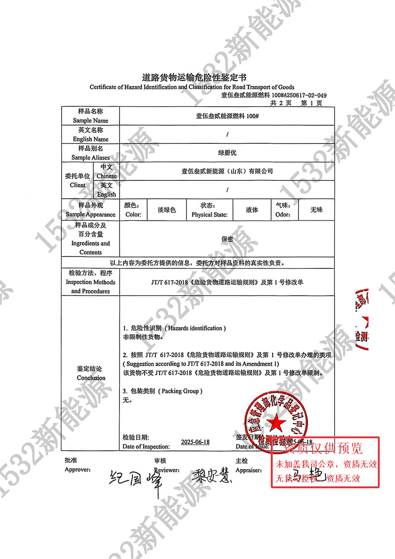 1532新能源集团1532能源燃料100号,是一种生物能源,分子式里面含氧充分,燃烧后产生水和二氧化碳,比液化气、天然气排放更干净,属于国家四大清洁能源之一,是有别于传统石油能源的高质量环